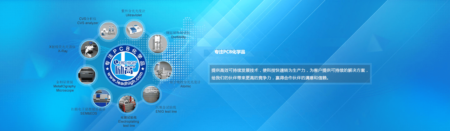 深圳市勵高表面處理材料有限公司是致力于金屬或非金屬表面技術(shù)處理領(lǐng)域的集研發(fā)、生產(chǎn)、銷售、服務(wù)為一體的科技實體,經(jīng)營印刷線路板、五金、ASB塑膠等表面處理的添加劑,以及其他表面處理產(chǎn)品。公司憑借雄厚的技術(shù)力量和人才優(yōu)勢,不斷進(jìn)步,走創(chuàng)新發(fā)展之道路,以“誠信、研發(fā)、服務(wù)”為經(jīng)營理念,以ISO9001標(biāo)準(zhǔn)化管理體系為品質(zhì)保證,以客戶滿意為服務(wù)宗旨,使產(chǎn)品質(zhì)量和新產(chǎn)品與國外同步輸出,為客戶提供快捷、有效、低成本、服務(wù)周到的服務(wù)。